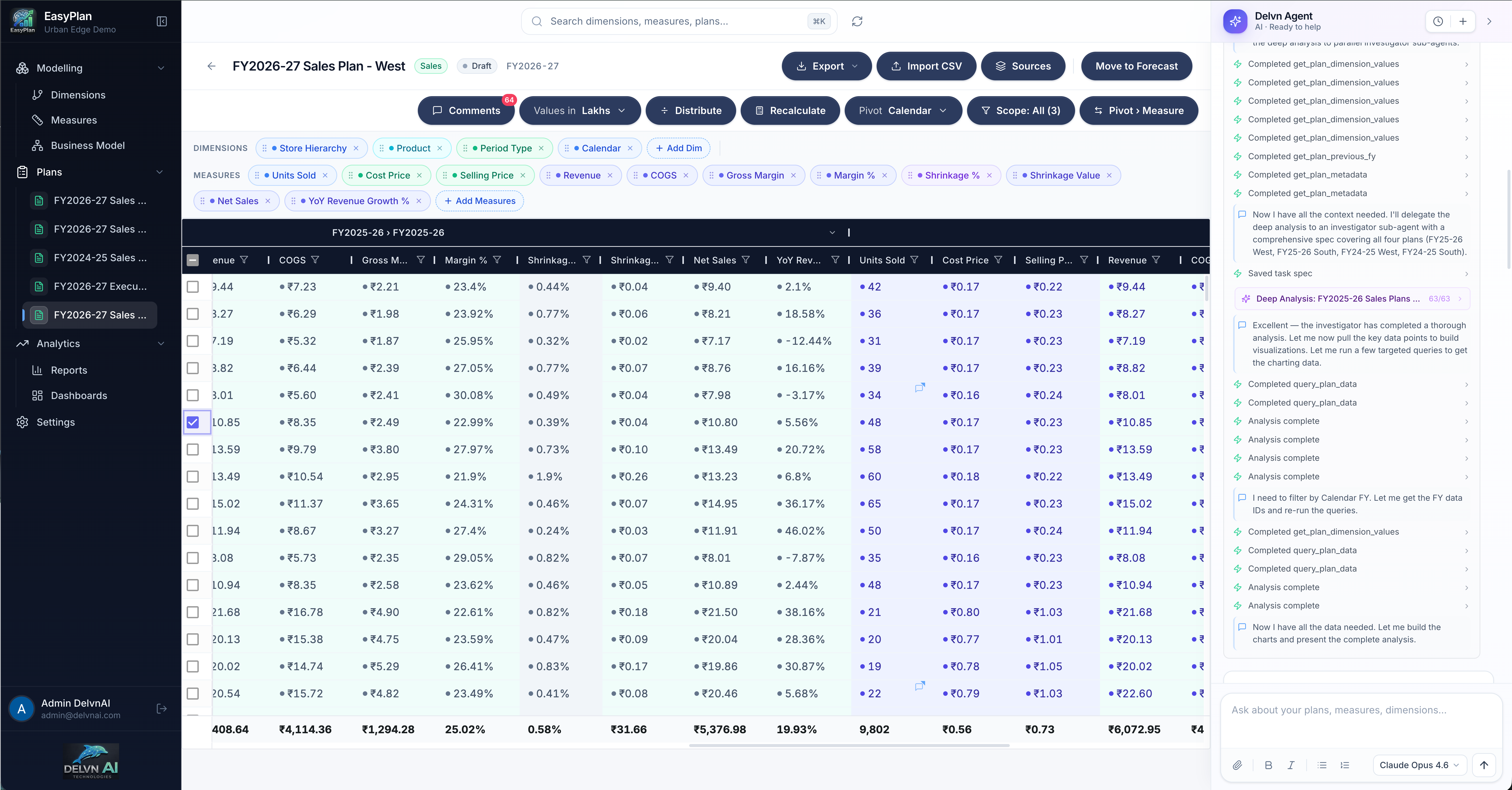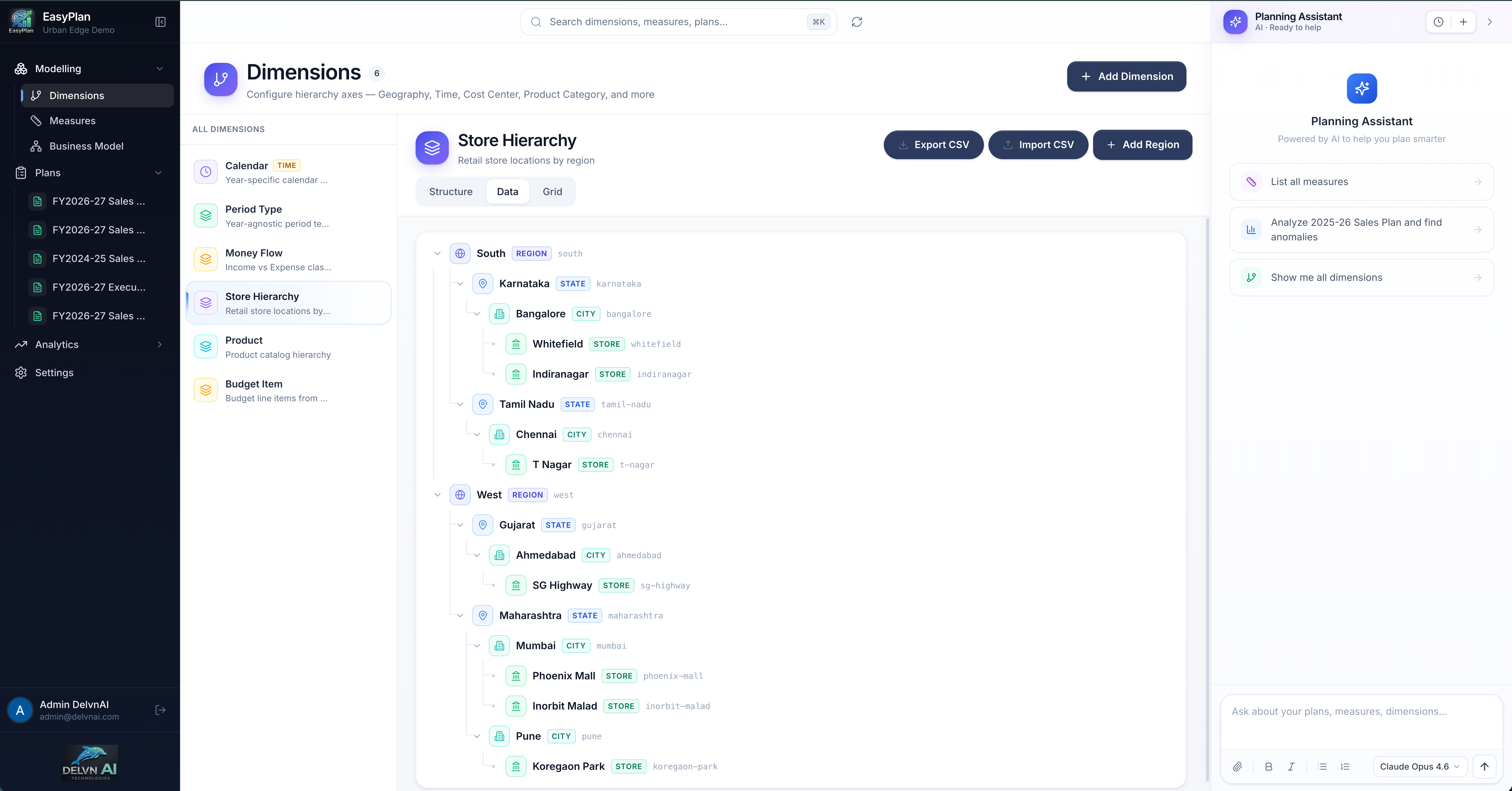 Give EasyPlan your existing spreadsheets. Delvn — our planning agent — reads them, infers your dimensions, hierarchies, measures and formulas, and hands you a working plan. No multi-week implementation. No consultants. No template lock-in.